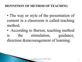 This is important because visuals diagrams, figures, photos and the like have a powerful impact on learning. Traditional teaching methods, which are, in short, methods of presentation, presentation, and indoctrination, and the principal role in it is for the teacher, and the learner's role is passive or secondary. This can serve as great practice for your presentation before showtime. 6) Its contribution to the link between the theoretical and practical sides of the academic subject. Read on to understand the various aspects of clinical teaching methods. Remarkable and important points of the data acquired through the interviews were determined. PowerPoint is especially useful when providing course material online. The students as well as the teachers are equally active in the 2) Directed or controlled discussion: it aims to reach ideas and information also through the learners, but in contrast with free discussion, it is based on a specific topic in order to reach a decision in it. Teaching is a science that has its origins and rules, and it can be observed, measured, evaluated and then trained on its skills. Students need to grapple with challenging problems, practice skills, discuss and defend viewpoints. document.write(new Date().getFullYear())